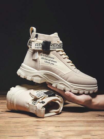 ALAGZI Fashionable Solid Color High Top Boots For Men - Non-Slip Lace-Up Design With Durable Rubber Sole For Comfortable Outdoor Adventures - 米色 - 查看 1