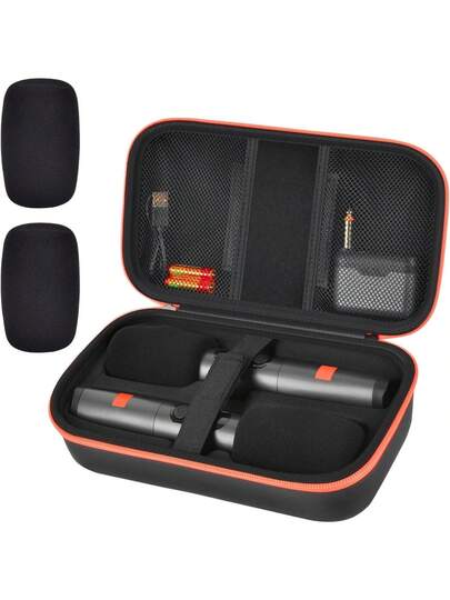 ALKOO 适用于 J*L PartyBox 和双麦克风系统的无线麦克风收纳盒,防震卡拉OK麦克风旅行收纳盒,带麦克风海绵套,可收纳2个麦克风、接收器、适配器、AA电池、充电器 - 仅含收纳盒 - 黑色 - 查看 7