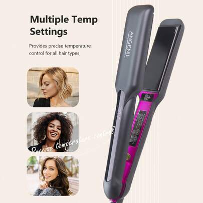 ANGENIL沙龙级造型器,便携式双电压110-240V,二合一直发卷发器,液晶显示屏,8档温度设置,钛金直板夹,1.6英寸直发器,适合女性,节日礼物 - 灰色 - 查看 13