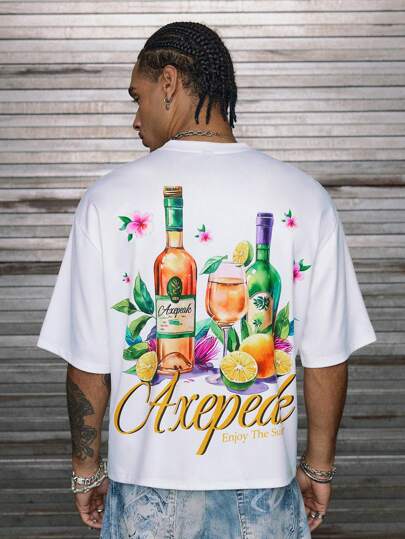 AXEPEAK 休闲夏季宽松男士图案印花短袖T恤 - 白色 - 查看 1