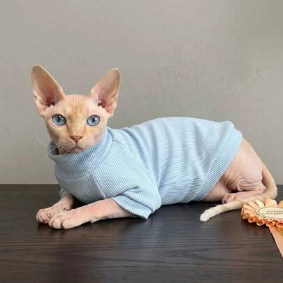 阿比西尼亚无毛猫夏季防掉毛三色罗纹高领透气高弹宠物猫T恤