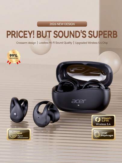 Acer OHR555 蓝牙耳机,耳挂式设计,带充电盒,非侵入式 OWS 无线耳机,立体声低音,降噪,低延迟,佩戴舒适,适合学习、商务、运动、跑步、骑行,兼容手机、平板电脑、笔记本电脑,是圣诞节和情人节的绝佳礼物 - 均碼 - 查看 10