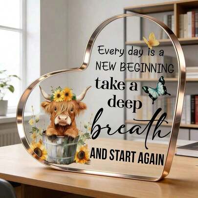 亚克力高地牛装饰品,送给女性、朋友和姐妹的完美励志礼物——“每一天都是新的开始”——浴室、卧室和书房的必备装饰品。
