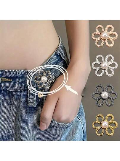 可调节弹力腰带夹花朵扣,适用于牛仔裤、T恤、休闲裤,无需缝纫,易于拆卸的纽扣夹,适合学校场合,是送给家人和朋友的完美礼物。 - 彩色 - 查看 5