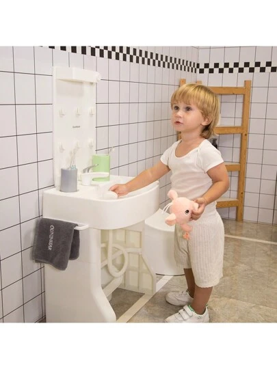 可调节高度儿童浴室水槽,配有自动水龙头、电动开/关水、照明 - 适合 1-7 岁的幼儿,无需安装
