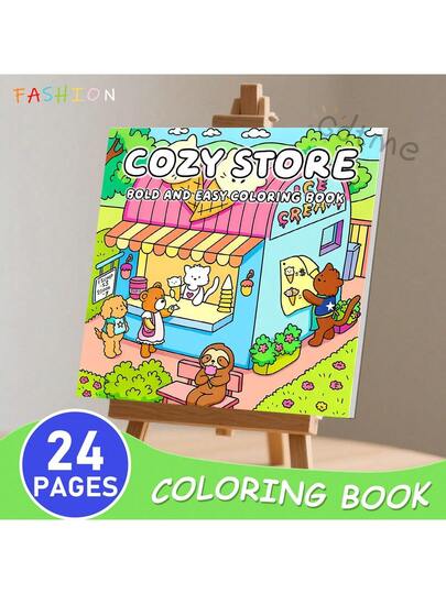 成人涂色书 - 奇趣动物商店,可爱大胆的涂鸦设计,绝佳的生日、圣诞节、新年、返校礼物,文具 - 動物商店 - 查看 1