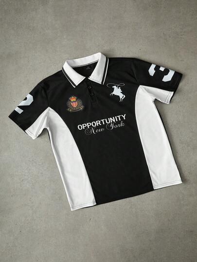 Aesthetic Post 男士简约印花翻领Polo衫 - 彩色 - 查看 1