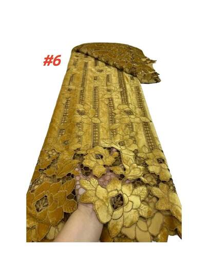 非洲天鹅绒蕾丝面料 2026 高品质尼日利亚蕾丝 法国天鹅绒蕾丝面料,适用于派对、婚礼礼服缝纫面料 - 彩色 - 查看 6