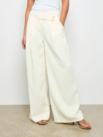 AiiRZ 专业阔腿裤高腰办公室正式商务长裤秋冬春装 - 米色 - 查看 1