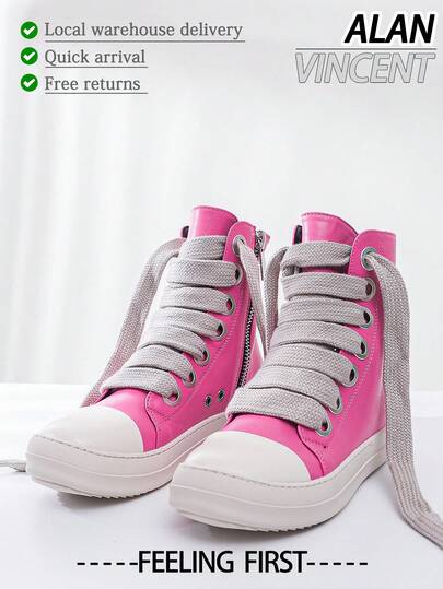 Alan Vincent[Free Returns And Exchanges] [Quick Arrival][Local Delivery]Rose Red Boots New Style Women Boots High-Top Women Lace-Up Zip Flat Boots Party Shoes For Women Daily Wear Ladies Shoes Casual And Versatile Fashion Sneakers Cute Boots Classic American Women's Boots
