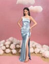 Alisa&Leo 少女优雅缎面毕业礼服,后背交叉系带 - 方领礼服,适合毕业舞会、学校活动和青春庆典