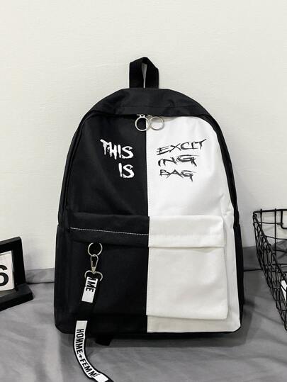 字母圖案大容量孩子們後背包 - 黑色 - 查看 1