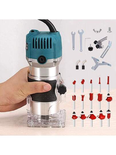 电动木工雕刻机 800W 110v-铝合金动力木工手动修边机,配备链锯盘,美国插头,无需电池,适用于修边、倒角和缺口 - 美規A型插(110-127V) - 查看 1