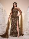 口袋设计,圆领,薄纱,刺绣,蕾丝,七分袖,宽松下摆,高端晚礼服,适合舞会、婚礼、派对、婚礼宾客等场合。