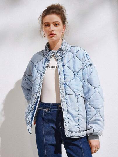 SHEIN Essnce 女士洋葱形绗缝羽绒夹克 - 藍色 - 查看 1