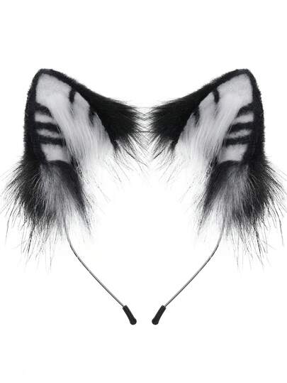 动物耳朵头带 手工制作 仿毛皮 狐狸 猫 狗耳朵头饰 适合角色扮演派对、万圣节 - 耳朵 - 查看 5