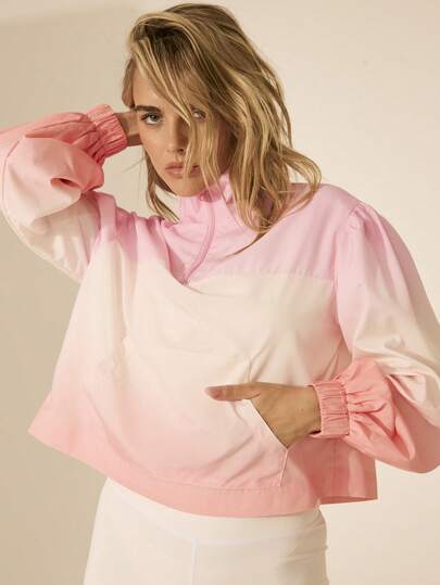 Aralina 休闲运动春夏度假沙滩跑步轻便派克大衣渐变色漏斗领拉链 - 粉色 - 查看 1