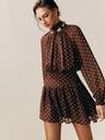 Arave 编织花卉印花圆领荷叶边饰 V 领长喇叭袖优雅休闲户外通勤度假女士连衣裙,春夏秋季