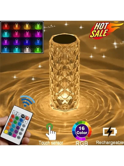 人造水晶燈,16種RGB夜光彩色觸控玫瑰形水晶台燈,附遙控器和觸控,LED玫瑰觸控燈可用於酒吧、臥室、兒童禮物、女孩愛好者,支援USB充電 - 彩色 - 查看 1
