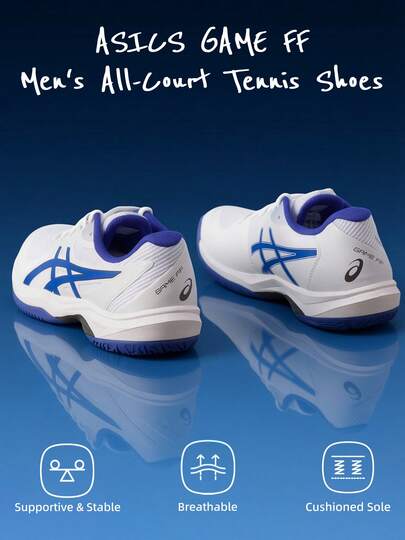 Asics 男士网球鞋 GAME FF 透气缓震训练运动鞋,低帮休闲通勤健身舒适鞋 1041A489-103 - 白色/藍色 - 查看 1
