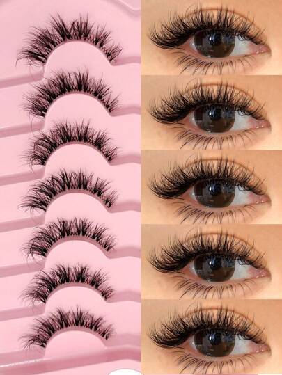 Asiteo 7对装 透明带假睫毛 仿貂毛猫眼假睫毛 自然蓬松卷翘 浓密假睫毛 旅行必备化妆工具 - 濃密款 - 查看 7