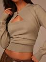 Athîral 女士纯色落肩长袖前开襟薄纱上衣和裤子两件套