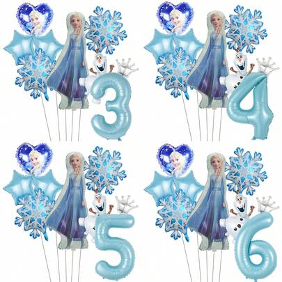 5. 官方授权的优雅蓝色公主生日主题乳胶气球,含数字铝箔气球,生日派对装饰气球套装,雪花公主雪人主题生日快乐气球组合,适合成人生日礼物派对墙面装饰气球套装