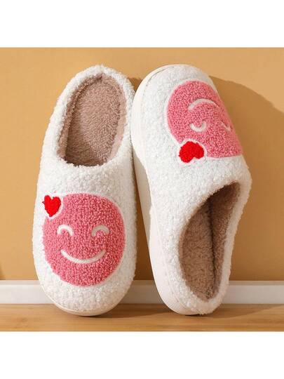 秋冬季彩色卡通图案毛绒拖鞋,室内保暖轻便一脚蹬拖鞋,男女通用,大码可选 - 粉色 - 查看 1