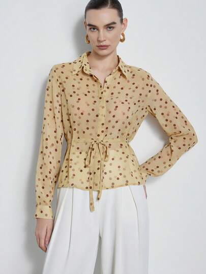 Aveloria Modichic 优雅通勤长袖衬衫,随机水波点印花系带,时尚百搭,秋冬款 - 彩色 - 查看 1