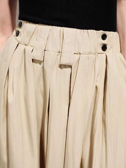 Aveloria Modichic 新款欧美复古时尚休闲松紧腰褶皱宽松中长裙 - 卡其色 - 查看 1
