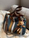 1入流行簡約拼色背包,適用於女性日常使用、書包、手提袋、電腦隔層、大容量,適用於青少女、女性大學生、中學生、小學生、戶外、旅行、外出、辦公室
