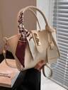 時尚,簡約,休閒風格,1件流行荔枝紋純色鎖匙和拉鍊頂部pu手提包斜挎包,帶有頸巾裝飾,適用於女孩和少女的日常使用