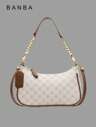 1 件女士纯色 PU 单肩包,办公室通勤百搭腋下包,配有可调节肩带,斜挎链条包,腋下包,手提包,金箔字母包