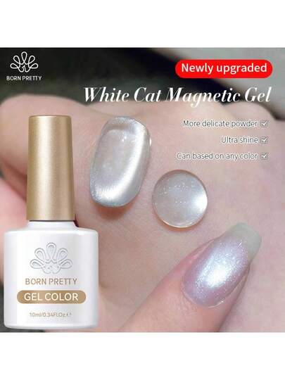 BORN PRETTY 10ml 白色猫咪磁性凝胶超闪亮亮片半永久可卸UV凝胶美甲油 - 白色 - 查看 10