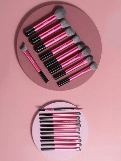 BS-MALL 20件套专业全脸化妆刷套装,带收纳袋,高品质粉底刷、腮红刷、修容刷、眼影刷,刷毛柔软,不掉毛 - 玫紅色 - 查看 8