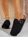 女士秋冬新款保暖防滑静音平底中跟毛绒拖鞋,简约休闲舒适一脚蹬室内家居拖鞋