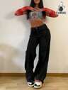 大码女式 Y2K 街头风格多口袋直筒工装牛仔裤