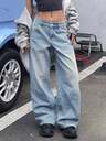 女士Y2K高腰多口袋做旧直筒工装牛仔裤