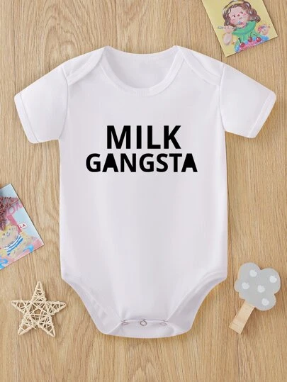 嬰兒女孩1件字母圖形連身衣 - 白色 - 查看 1