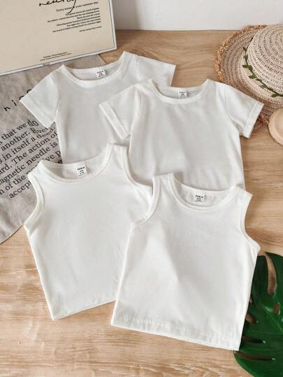男婴休闲百搭纯色短袖背心 - 白色 - 查看 4