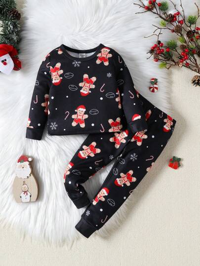 兒童男寶寶聖誕印花貼身睡衣套裝,適合在聖誕節穿著 - 彩色 - 查看 1