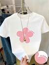 Disney 夏季女婴两件套,可爱米奇唐老鸭格子印花T恤和短裤套装,休闲儿童日常基础款字母印花针织圆领短袖松紧腰裤,户外度假装