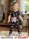 SHEIN 可爱粉色爱心和小猫印花女婴休闲简约贴身短袖连体裤夏季