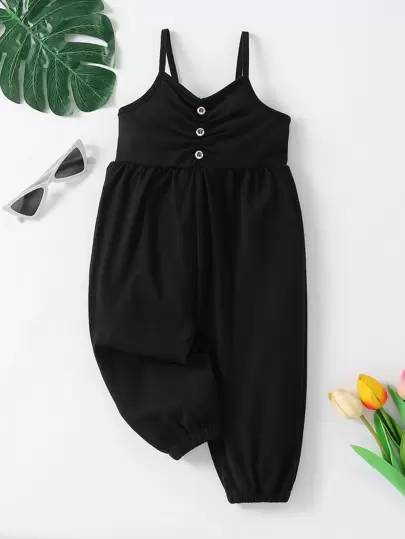 嬰兒女寶寶假扣透褶前胸工裝連身衣 - 黑色 - 查看 1