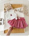 SHEIN 奶油白色,复古可爱甜美迷你樱桃图案,女婴休闲简约短袖圆领T恤和喇叭裤套装,适合秋季