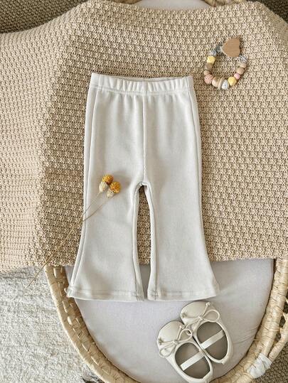 女婴休闲时尚米色条纹喇叭裤,春秋季 - 米色 - 查看 10