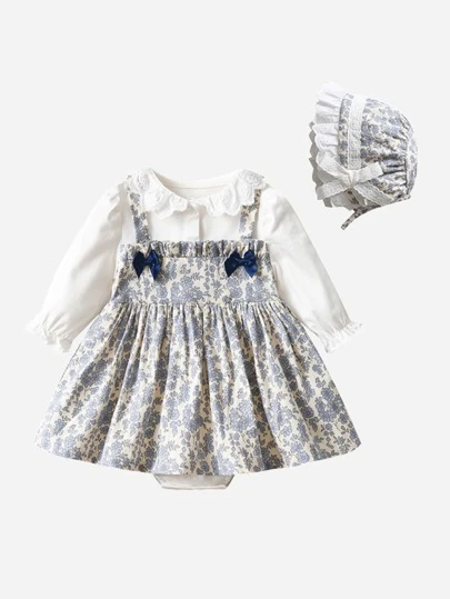 女寶寶春季洋裝新款兒童一歲二合一連體衣洋裝春秋時尚風格時尚公主裙 - 彩色 - 查看 1