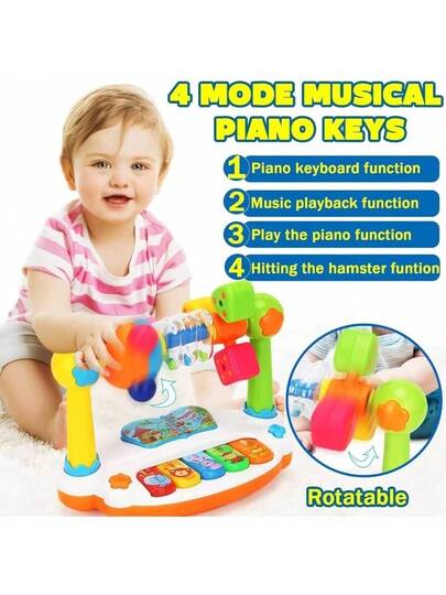 婴儿钢琴玩具,带灯光和音乐,适合12-18个月宝宝的早教益智钢琴玩具,1岁男孩女孩礼物 - 彩色 - 查看 1