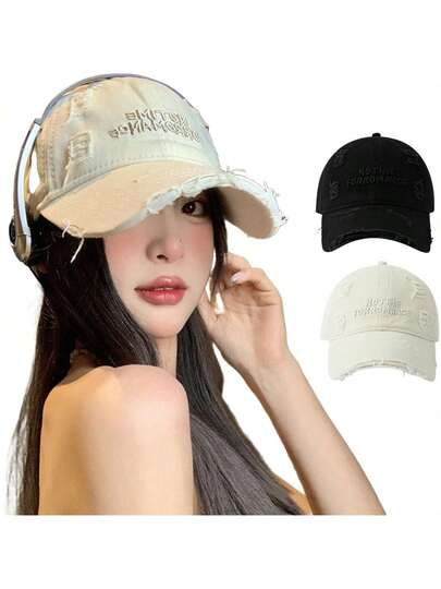 返校时尚男女情侣棒球帽,刺绣,做旧,街头风,超大宽檐,软帽冠,太阳帽, - 彩色 - 查看 1