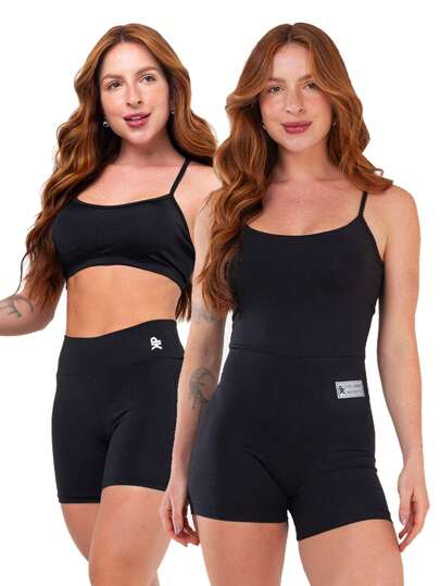 Backless Strappy Jumpsuit Kit + Fitness Set Strap Top Shorts Mid-Thigh Zero Transparency Gym